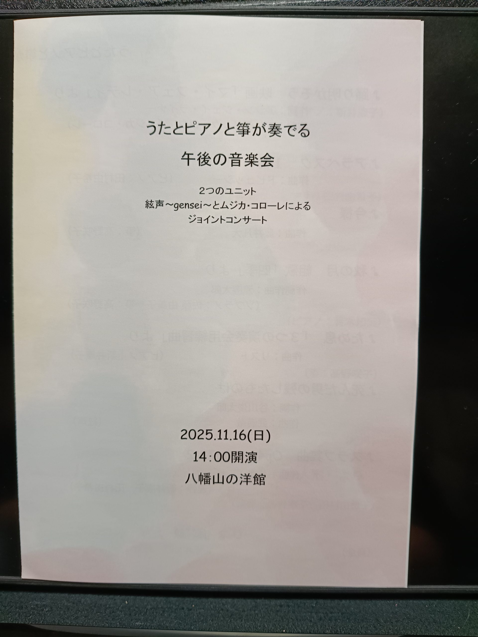 本日、八幡山の洋館にて開催された「うたとピアノと箏が奏でる音楽会」。